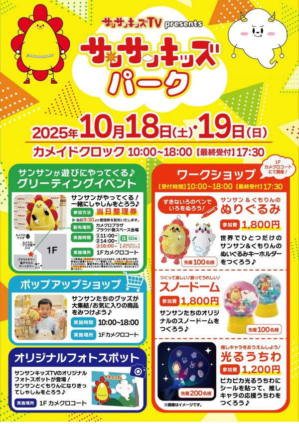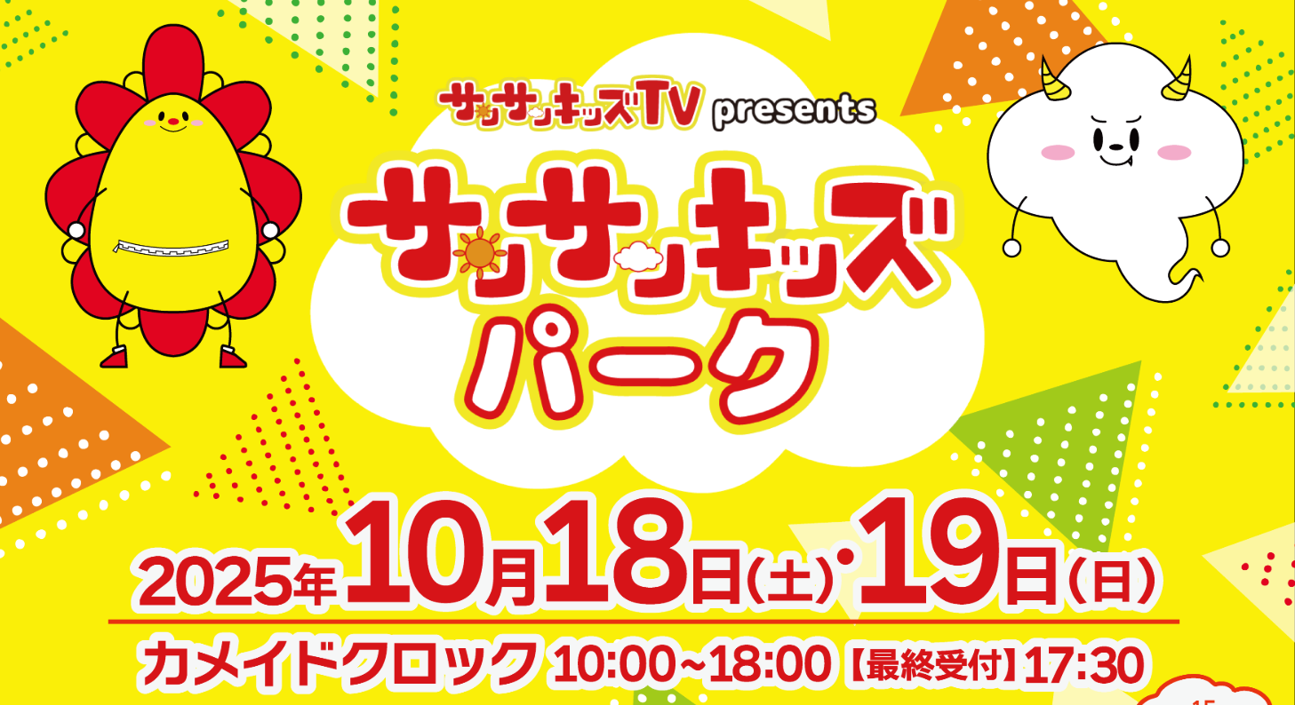 お子さまに大人気のYoutubeチャンネル、「サンサンキッズTV」のイベントがカメイドックロックで開催されます!